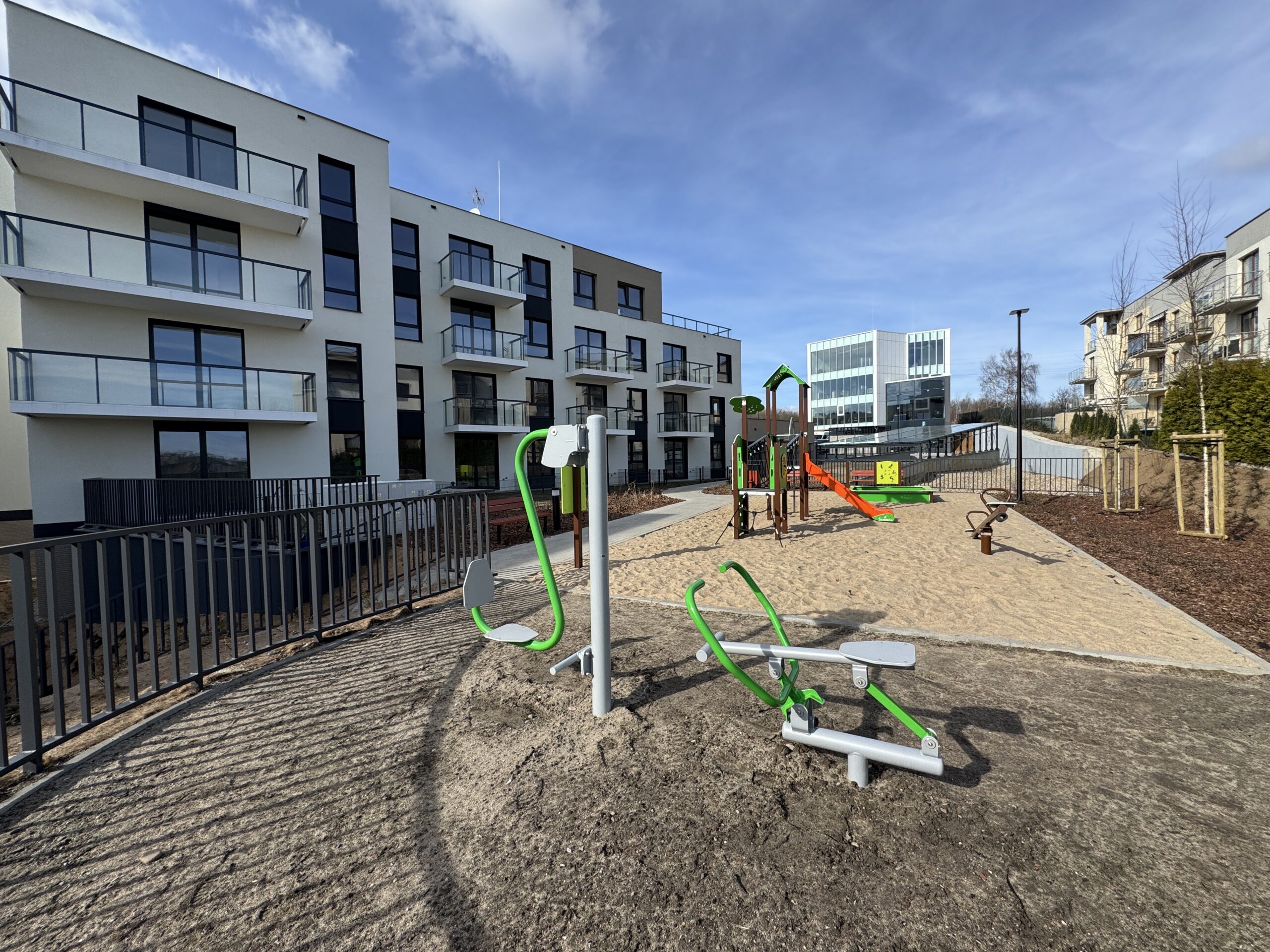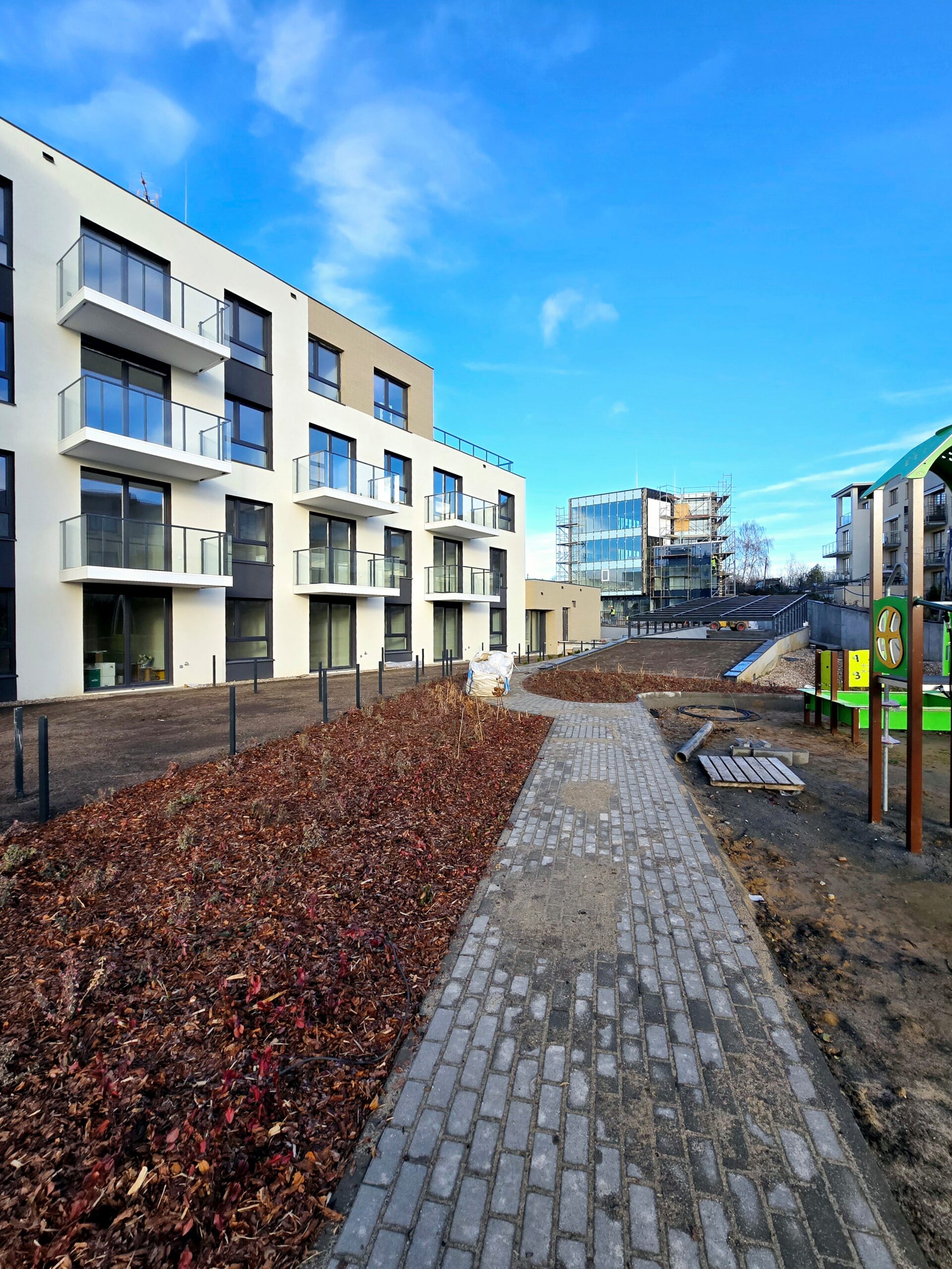 Naszą inwestycję dopełnia starannie zaprojektowana roślinność oraz alejki i skwerki z elementami małej architektury.